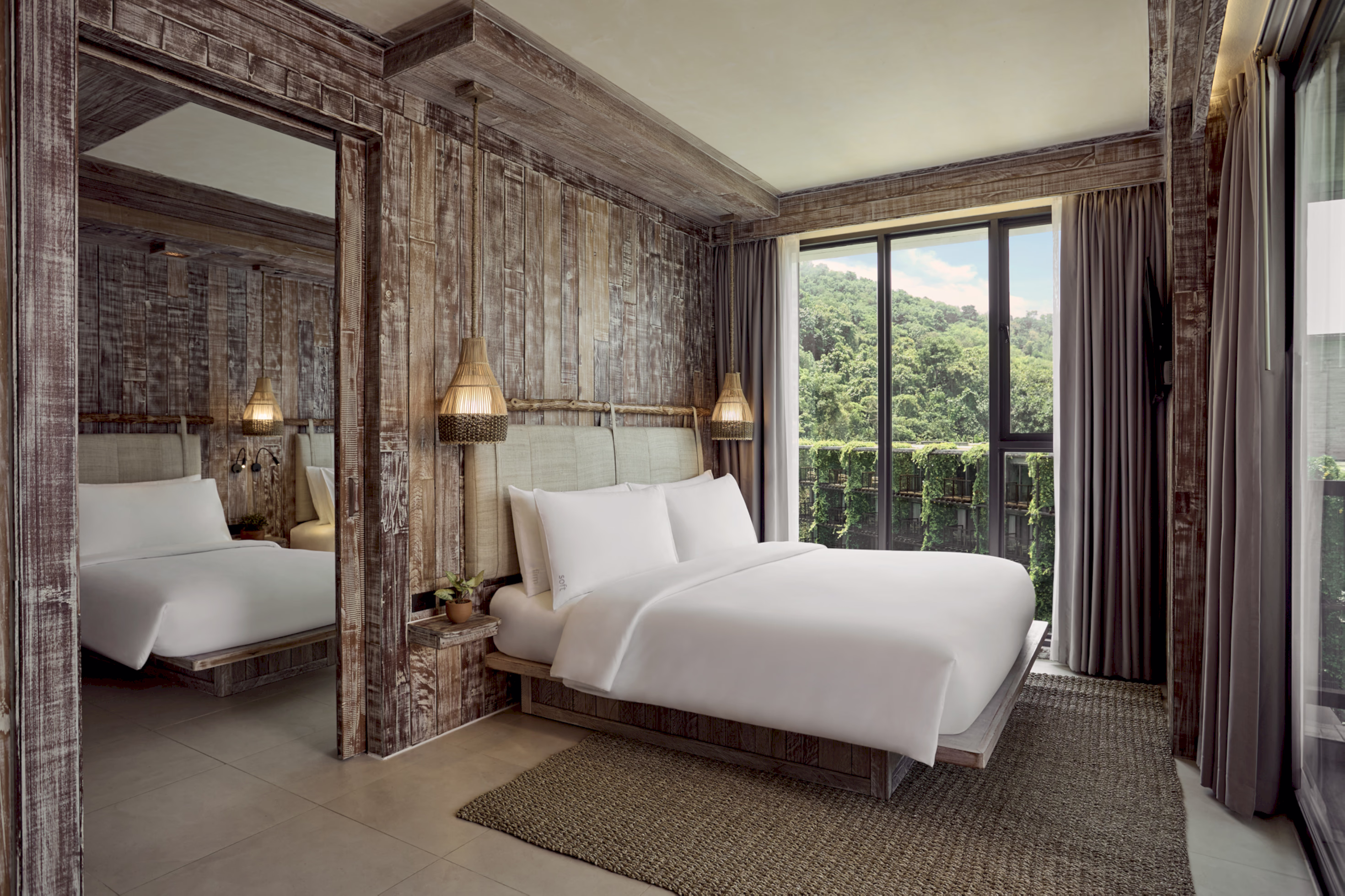 2 Bedroom Family Suite - 60 m², maksimum 4 kişi, şehir manzaralı | 2 yatak odası, biri çift kişilik yatak, diğeri ikiz yatak, tropikal duş ve küvet